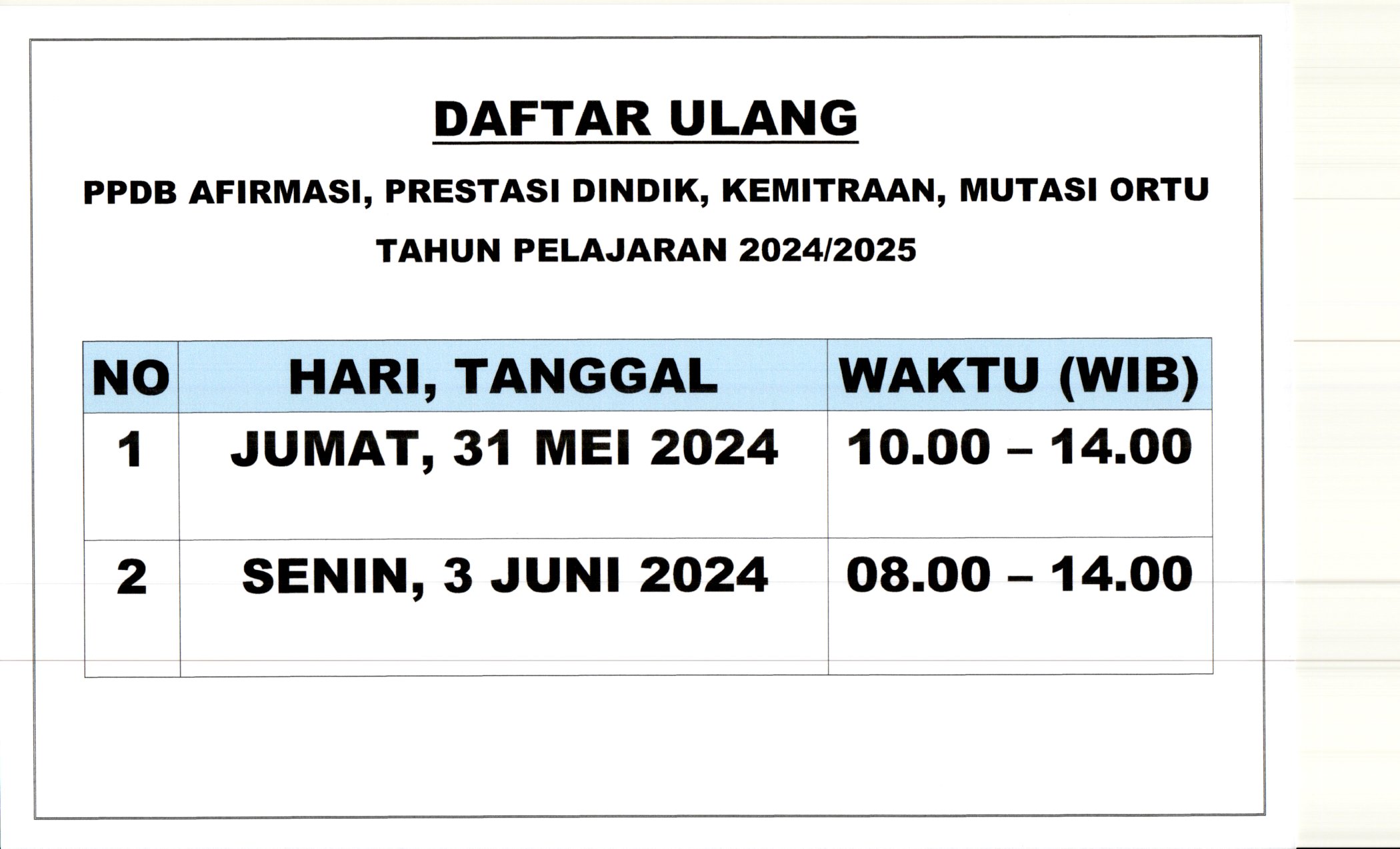 PENGUMUMAN DAFTAR ULANG